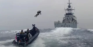 В свою очередь, компания Gravity Industries опубликовала видео, где трое офицеров экспериментируют с летательной курткой. В одном из роликов видно, как пилот, одетый в реактивный костюм, взлетел с надувной лодки вслед за кораблем, приземлился на палубу и сбросил через борт лестницу, чтобы по ней могла взобраться остальная часть команды.