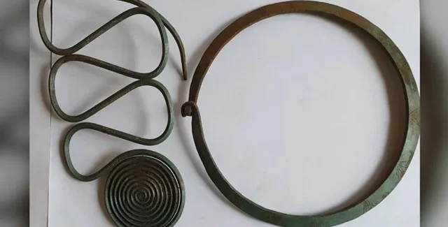 Среди обнаруженных сокровищ — шейные кольца, бронзовые спирали, ожерелья, кольца для рук, булавки и браслеты для щиколоток, а также верхняя часть топора.