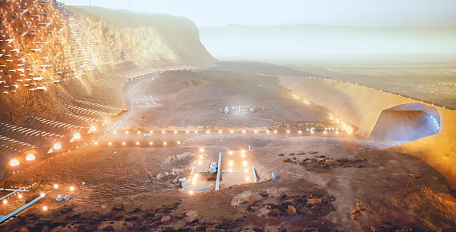 В скале пророют туннели, где планируют установить модульные помещения для жилых и рабочих зон. В месте, где туннели достигнут стены обрыва, построят "Зеленые купола": парки для горожан и экспериментальные плантации в среде с марсианской атмосферой.