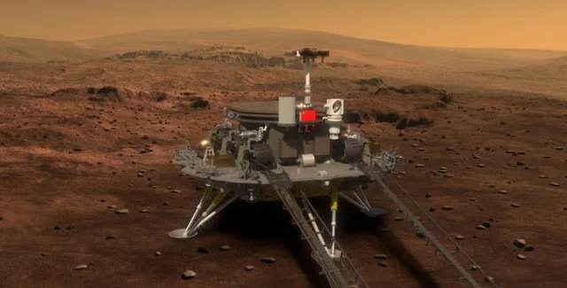 Шестиколесный марсоход "Чжуронг" высадился в районе равнины Утопия на Красной планете.
