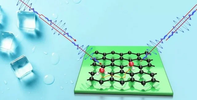 Моделирование показало, что при помещении на холодный графен все молекулы воды ориентируются в одном направлении, причем два их атома водорода направлены вниз (атомы водорода в молекуле воды выступают от центрального атома кислорода, как два мышиных уха). Эти молекулы воды группируются вместе на поверхности графена, но из-за их ориентации между ними все еще остается пустое пространство в несколько молекул.