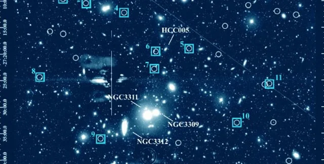 При визуальном осмотре нового изображения, полученного из скопления Гидра I, ученые нашли 27 галактик с низкой поверхностной яркостью, 12 из которых являются кандидатами в ультрадиффузные галактики.
