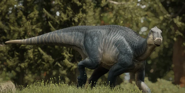 Игуанодоны питались растениями, вырастали до 10 метров в длину и ходили на двух ногах.