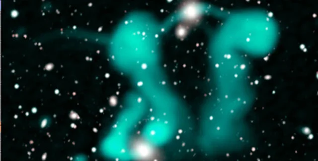 Никогда ранее не наблюдавшиеся облака, находящиеся от нас на расстоянии около миллиарда световых лет, напоминают два танцующих призрака, которые были обнаружены с помощью радиотелескопа CSIRO ASKAP.