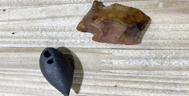 Что касается второго древнего артефакта — грузила, то эксперты пока точно не знают, для чего он использовался. Однако отверстия говорят о том, что он мог крепиться к костяным крючкам для рыбной ловли.