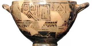 Чашу или котилу, согласно ранним исследованиям изготовили на острове Родос, недалеко от Греции, в 8 веке до нашей эры. Кроме надписей, на ней имеются и рисунки в геометрическом стиле. Согласно предыдущим данным, это была могила ребенка возрастом от 10 до 14 лет, тело которого сначала сожгли на костре, а потом похоронили. Кроме знаменитой чаши, в могиле нашли 25 фрагментов и других глиняных сосудов.