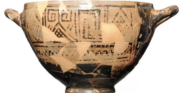 Три строки текста на глиняной чаше на древнегреческом, написаны гекзаметром (строка стихов с шестью акцентами), что, как считают ученые, является отсылкой к Гомеру.