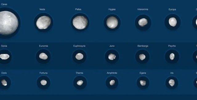 Астрономы создали общее изображение самых крупных астероидов, где можно увидеть, как они на самом деле выглядят. Большинство из них имеют размер больше 100 километров, причем два самых больших астероида, Церера и Веста, имеют диаметр около 940 и 520 километров соответственно, а два самых маленьких, Урания и Аузониа, всего около 90 километров.