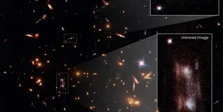 К тому же, галактика, которая выступает в качестве линзы, находится на своего рода ряби в космосе, вызванной гравитацией плотного скопления темной материи. По словам ученых, дополнительные изображения были получены телескопом, когда свет от далекой галактики проходил через передний план скопления по этой ряби.