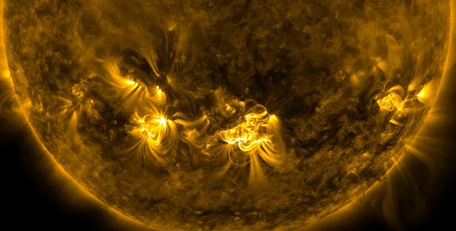 Видео было снято космическим аппаратом Solar Dynamics Orbiter и на нем хорошо видно солнечные вспышки, которые длились всю неделю и закончились мощной солнечной бурей класса X1 как раз на Хеллоуин, которая в свою очередь усилила полярные сияния на Земле, сообщает space.com