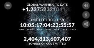 Количество выбросов в мире снова растет, в это же время, глобальное потепление все ближе подбирается к пороговой отметке роста температуры на 1,5° C. Для того, чтобы отслеживать эти изменения в онлайн-режиме, ученый из Университета Конкордия Дэймон Мэтьюз и эксперт из Центра международных исследований климата и окружающей среды Глен Петерс создали "климатические часы".
