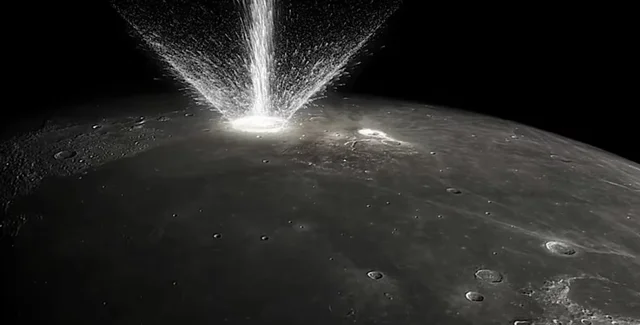 На видеосимуляции можно увидеть, как космические камни падают на Луну и взрываются.