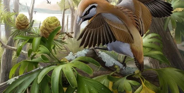 Реконструкция древнего вида птиц - Brevirostruavis macrohyoideus | Фото: Sci news