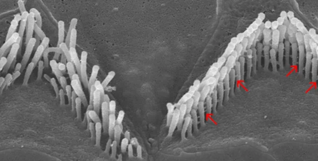 Когда идет звук, мембрана вибрирует, а сенсорные клетки улавливают эти колебания и преобразуют их в электрические сигналы, которые идут в мозг. Но мутация гена STRC может помешать этому процессу.