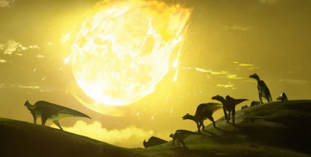 Астероид уничтожил около 75% жизни на Земле, включая нептичьих динозавров. Предки современных птиц стали единственной ветвью генеалогического древа динозавров, которая пережила вымирание.