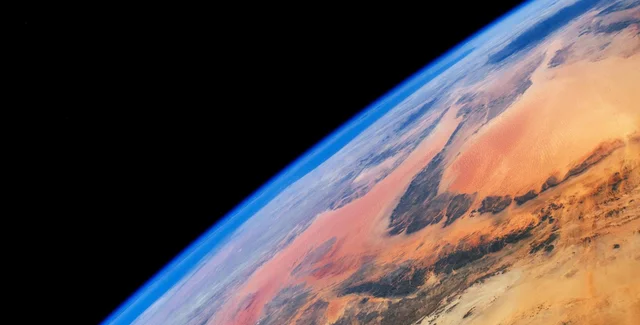 Захватывающий снимок Северной Африки был сделан внешней камерой высокой четкости (EHDC) на Международной космической станции (МКС). Жгучие красные и оранжевые цвета пустыни, темные оттенки гор и плоскогорий резко контрастируют с яркой синевой моря и горизонта, выделяясь на фоне черных оттенков космоса.