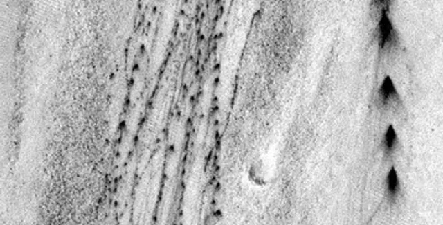 Ученые обнаружили более 4,5 тысяч узоров длиной до 2,5 км, оставленных камнями. Ученые говорят, что эти следы можно использовать для обнаружения сейсмической активности на Марсе. Это может служить доказательством того, что Марс геологически активен, хотя считается, что такая активность на планете прекратилась много лет назад.