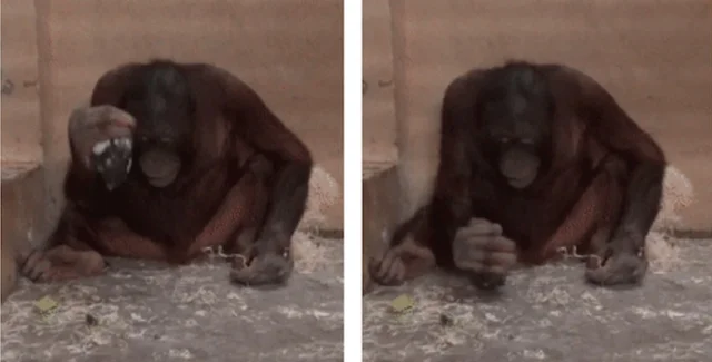 По словам исследователей, это был первый случай, когда необученный орангутанг, продемонстрировал способность разрезать предметы.