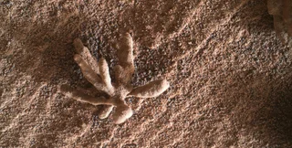 Марсоход NASA Curiosity сделал снимок миниатюрного минерального "цветка" на Марсе, пишет Universe Today.