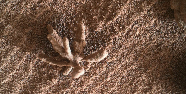 Curiosity уже встречал такие формы, они называются кластерами диагенетических кристаллов. Это результат рекомбинации минералов в составе трехмерных кристальных образований. Как отметила ученый Эбигейл Фрейман из Лаборатории реактивного движения, обнаруженный объект сделан из солей, называемых сульфатами. Изначально он был встроен в скалу, которая со временем выветрилась, но минеральные уплотнения не поддаются эрозии.