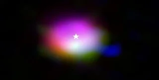 На изображении ниже видно, какие молекулы ученые обнаружили в диске вокруг звезды IRS 48. С помощью телескопа ALMA астрономы нашли такие сложные органические молекулы, как формальдегид (оранжевый цыет), метанол (зеленый цвет) и диметиловый эфир (синий цвет). Фиолетовым цветом показана окись углерода.