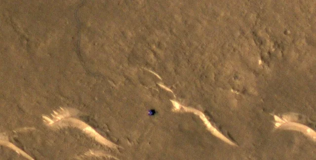 Орбитальный аппарат NASA запечатлел китайский ровер и отследил его следы на Марсе (фото)