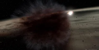 На этой иллюстрации показано, что происходит, когда два больших тела размером с астероид сталкиваются в космосе вокруг молодой звезды