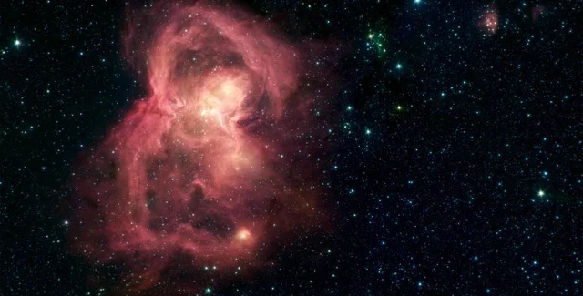 То, что на изображении выглядит, как гигантская красная бабочка, на самом деле является туманностью под названием W40. Это гигантское облако из газа и пыли, где формируются новые звезды. "Крылья" бабочки — это гигантские пузыри горячего межзвездного газа, который выходит из самых горячих и массивных звезд в этой области космоса.