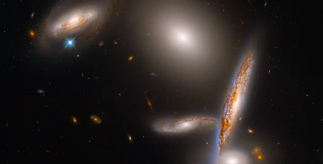 Все пять галактик, которые видны на этом изображении могли бы поместится в две галактики Млечный Путь. Изучая подобные плотные группы галактик, ученые получают больше информации о том, как формируются и как эволюционируют галактики.