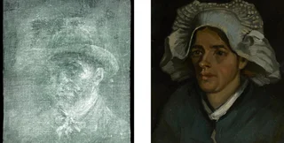 На обратной стороне ранней работы "Голова крестьянки" (1884 г.) реставраторы заметили под слоями клея и картона профиль бородатого мужчины в шляпе с полями и шейном платке. Несмотря на то, что видна только левая сторона его лица, Ван Гог сохраняет напряженный, неотвратимый взгляд.