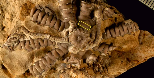 Окаменелость оказалась в хорошем состоянии, поэтому ученые смогли установить, что у найденного животного было 10 длинных рук и острых когтей, похожих на щупальца, ими существо хваталось за морское дно.