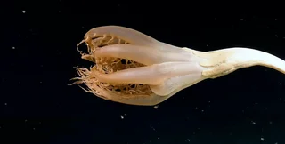 Видео, снятое на глубине 2 994 м, показывает момент открытия, а также комментарии взволнованных исследователей. Как отметил один их экспертов, существо выглядело отвратительно, когда ROV сделал крупный план его щупалец, захватывающих пищу. Также стоит добавить, что тело морского пера (стебель) имеет длину 2 м.