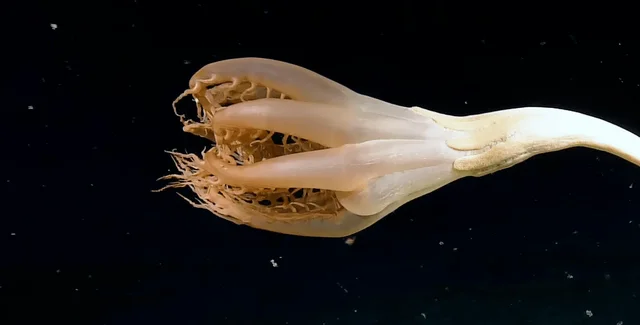 Найденное исследователями создание имеет щупальца, а также длинное тонкое тело в виде стебля, достигающего дна океана.