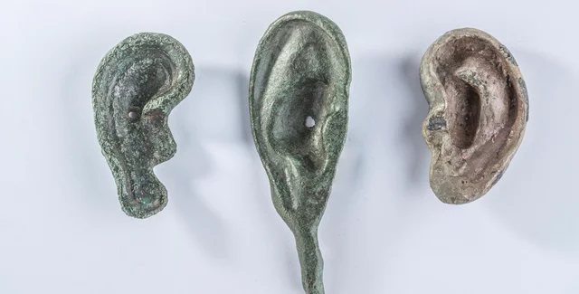 Другим ярким открытием стали отпечатки ног, найденные в священных банях и вытравленные следами свинца и серебра. Эти следы разных размеров были оставлены сандалиями, которые носили дети, подростки и взрослые. Здесь же обнаружили бычьи копыта и человеческие уши, связанные с Исидой и Сераписом. Археологи предполагают, что процесс подношения по обету включал в себя преданных, которые ходили по периметру бань, чтобы попросить у этих богов крепкого здоровья и благополучия.