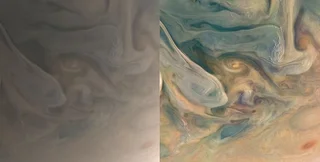 Доступ к этим фотографиям имеют многие ученые-любители и этой возможностью воспользовался инженер-программист Бьорн Йонссон, который обработал эти изображения. Йонссон обработал одно изображение, чтобы показать примерные цвета, которые мог бы увидеть человеческий глаз с позиции аппарата "Юнона".