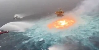 Подводный океанический пожар удалось погасить, а нефтегазовая компания Pemex, которой принадлежит это огромнейшее нефтяное месторождение, продолжила работы на платформе. Отметим, что нефтяное месторождение имеет не лучшую репутацию — за семь лет из-за различных несчастных случаев на платформах погибли около сотни сотрудников, затем воспылал океан, а теперь вот космические спутники засекли рекордные выбросы метана в атмосферу.