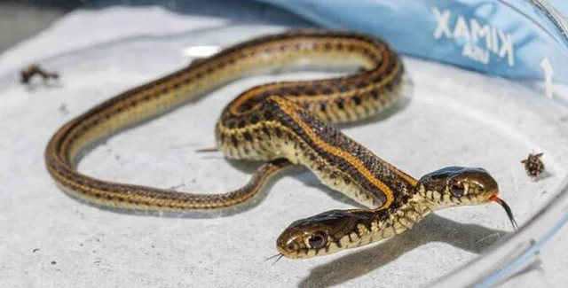 Как подчеркивают ученые, такая мутация у подвязочных змей случается примерно один раз на 100 000. И этому редкому существу повезло, что оно выжило.