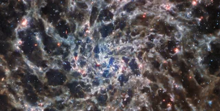 Спиральная галактика IC 5332, которая стала новым объектом для наблюдения телескопом Уэбба почти в половину меньше по размерам, чем наш Млечный Путь. Если наша галактика имеет примерный диаметр в 105 тысяч световых лет, то галактика IC 5332 протирается на 66 тысяч световых лет. Одной из особенностей этой галактики является то, что она почти идеально расположена "лицом" к Земле и поэтому можно насладится изображениями симметричных спиральных рукавов этой галактики.