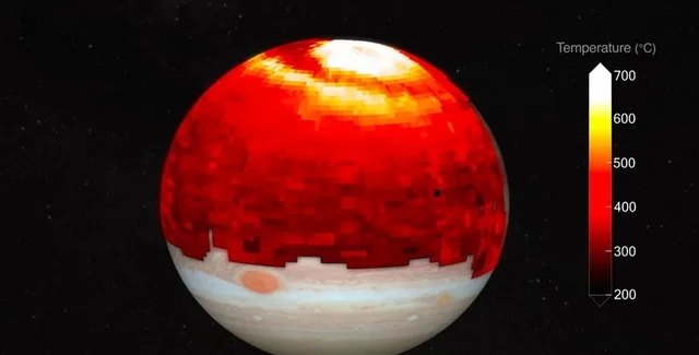 По словам О'Донохью, он и его коллеги выяснили, что полярные сияния на Юпитере могут нагревать область атмосферы вокруг полюсов до более чем 700 градусов Цельсия, а ветер распределяет это тепло по всей планете.