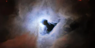 На изображении космического телескопа Хаббл можно увидеть отражательную туманность под названием NGC 1999, которая находится на расстоянии в 1350 световых лет от нас в созвездии Орион. Но чем является темное пятно в центре туманности до сих пор точно неизвестно, пишет SciTechDaily.