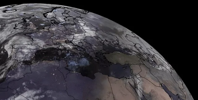 Ученый Саймон Прауд из Национального центра наблюдений за Землей, Великобритания разместил в своем аккаунте в Twitter короткие видеоролики, которые были составлены из снимков спутника Meteosat-9.