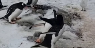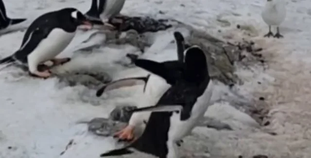 Как боец ВСУ. Украинские полярники показали, как пингвин наказывает наглого соседа за кражу (видео)