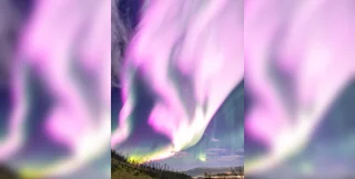 В основном полярные сияния бывают зеленого цвета и это связано с тем, что солнечные частицы сталкиваются с атомами кислорода в верхних слоях атмосферы Земли. Но из-за того, что поток солнечных частиц проник немного глубже в атмосферу, ниже 100 км, там он столкнулся атомами азота, газа которого много в этом слое атмосферы. Это и вызвало появление розового полярного сияния. В то же время, по словам Варика, появилось мощное полярное сияние зеленого цвета и оно продержалось в небе в течение нескольких часов.