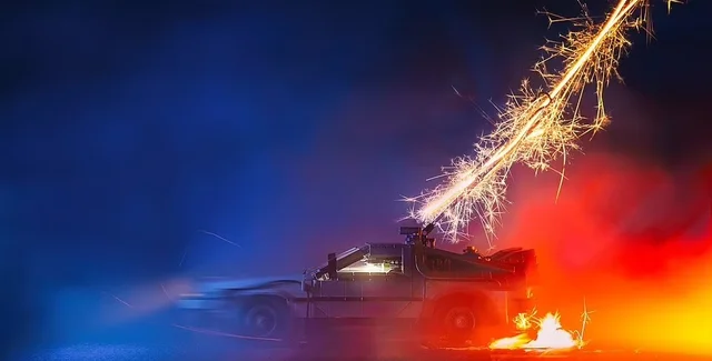 Фотографу удалось реконструировать момент, когда молния ударила в DeLorean, перенеся его в 1955 год.