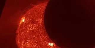 Свидетелем действительно впечатляющего события 23 ноября стал космический спутник GOES, который наблюдает за солнечной активностью. С помощью своих приборов он смог сделать снимки движения Луны на фоне Солнца, когда наш спутник на некоторое время перекрыл часть пылающей поверхности звезды своим темным силуэтом. Это затмение Солнца, которое длилось всего несколько часов, невозможно было увидеть с Земли и потому это особенно ценные кадры.