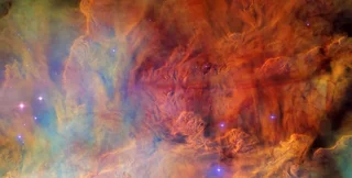По словам ученых из NASA именно газ из туманности Лагуна придает этому изображению вид дымовой завесы, где облака межзвездного газа и пыли тянутся от одной стороны этого изображения к другой. Звезды в скоплении покрыты клубящимися облаками газа красного, синего и оранжевого цветов в туманности, где происходит бурное образование новых звезд.
