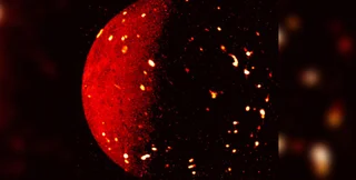 Еще в июле этого года "Юнона" сделала инфракрасный снимок Ио с расстояния в 80 000 километров. Самые яркие пятна на этом изображении соответствуют самым высоким температурам на Ио, где находятся сотни вулканов, и некоторые из них могут выбрасывать фонтаны лавы на десятки километров в высоту.