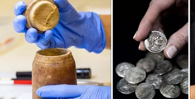 Монеты – всего их было 15 – нашли в уникальном деревянном ящике, выложенном кусками овечьей шерсти, покрытой большим куском пурпурной шерстяной ткани, а сверху слоем земли и мелких камней.