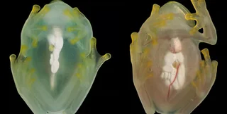 Стеклянные лягушки получили свое название из-за своего особого навыка — днем они делают свое тело совершенно прозрачным, чтобы слиться с окружающей средой и избежать угрозы. Ночью они выглядят просто зелеными, но с рассветом делают свою кожу и ткань буквально прозрачными, оставляя видимыми лишь кости, глаза и внутренние органы — все это делает их почти незаметными в листьях.