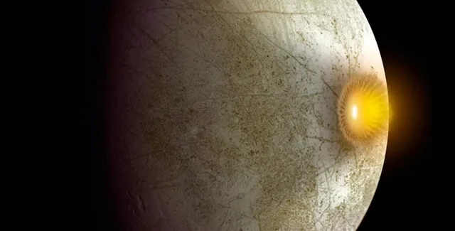 Удары комет по поверхности Европы могут способствовать проникновению строительных блоков жизни в ее подземный океан.